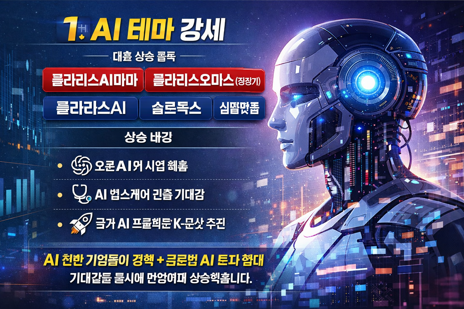 AI 관련 기업들이 정책 + 글로벌 AI 투자 확대 기대감을 동시에 반영하며 상승했습니다.