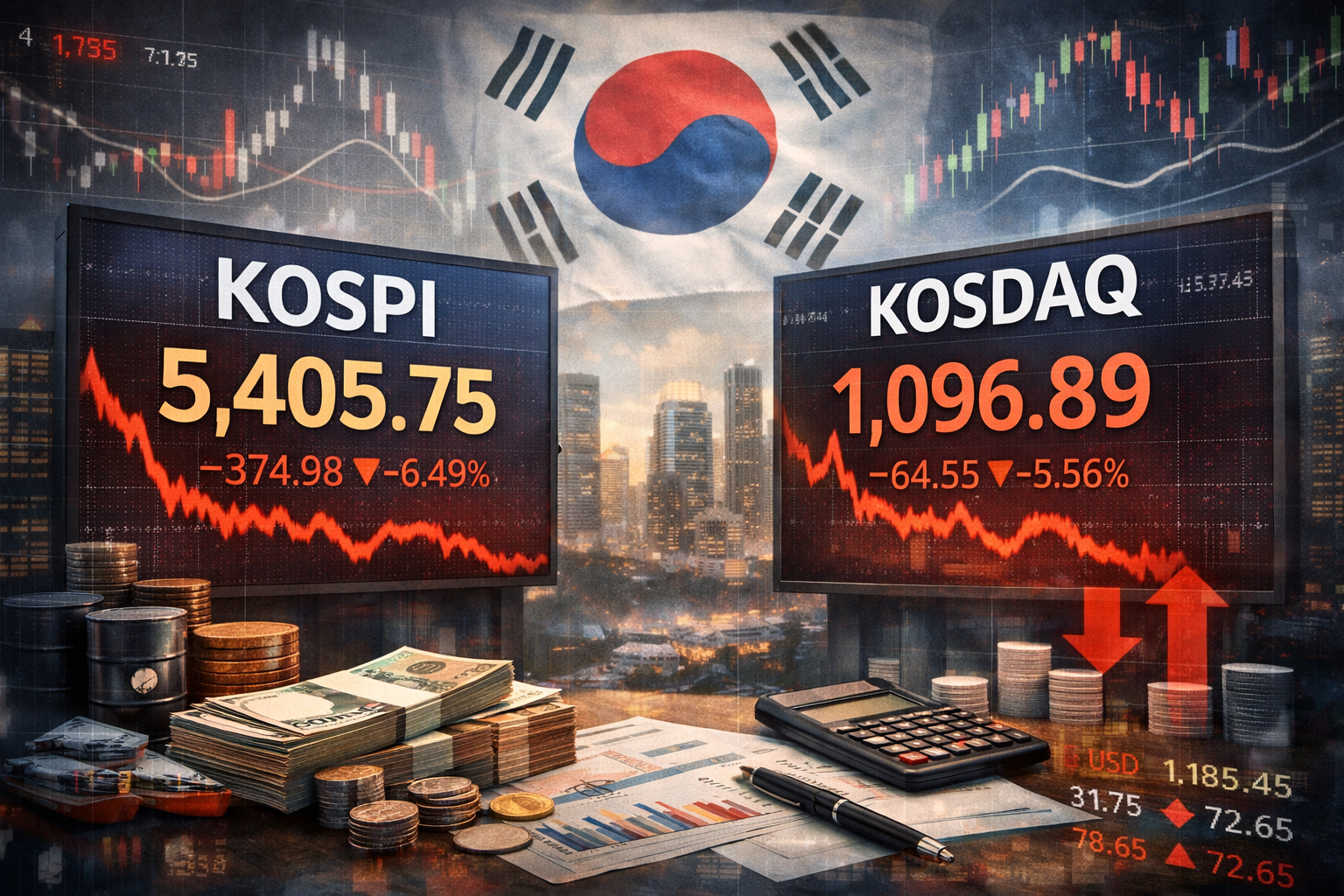 1. 코스피 ▼6.49%, 코스닥 ▼5.56% → 장초반부터 급락 흐름