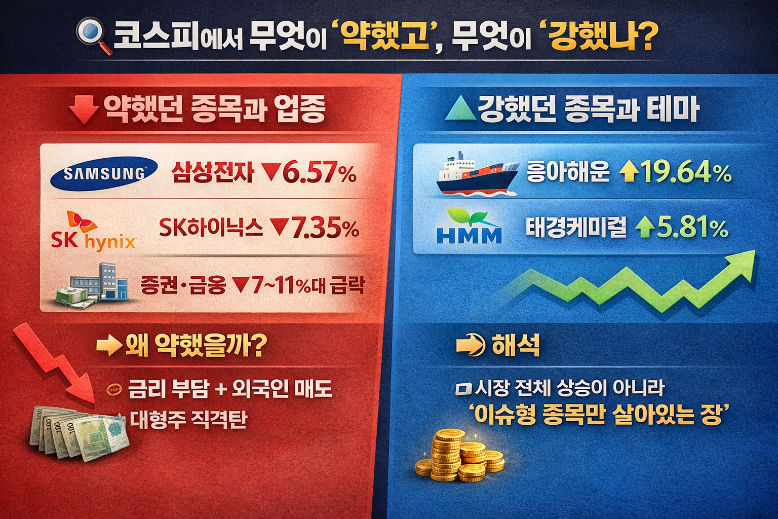 🔎 코스피에서 무엇이 약했고, 무엇이 강했나?