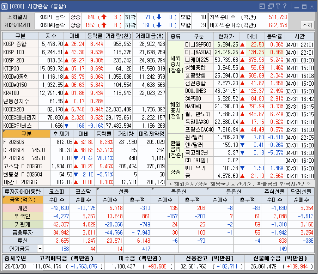 | [2026년4월 1일] 미국 증시 마감 및 국내시장 장초반 시황브리핑 (0) | 2026.04.01 |