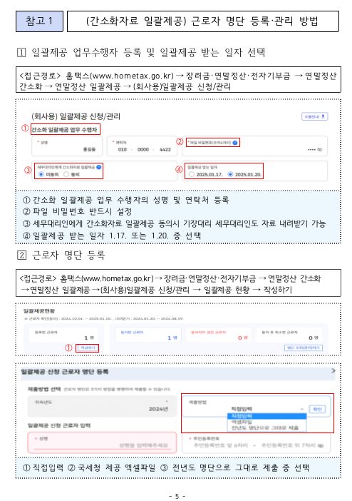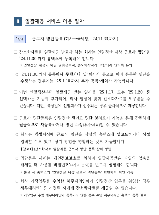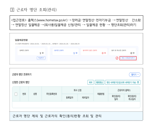 2025 연말정산 간소화 자료 조회기간 및 근로자 명단 등록 관리 방법