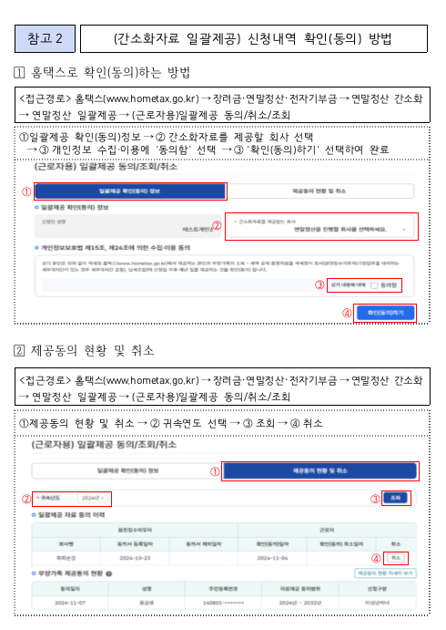 - 보험료나 교육비는 본인뿐만 아니라 부양가족의 자료도 조회할 수 있으므로 사전에 가족 동의 절차를 완료해야 합니다.