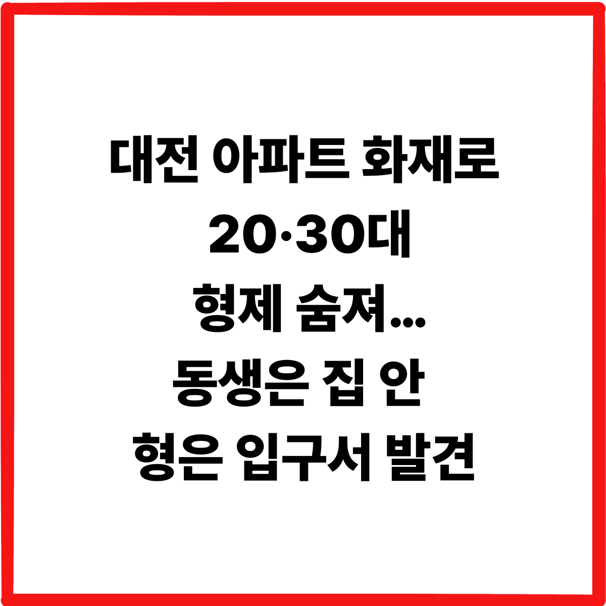 대전의 한 아파트에서 발생한 화재로 20대 동생과 30대 형이 숨지는 안타까운 사고가 발생했다.
