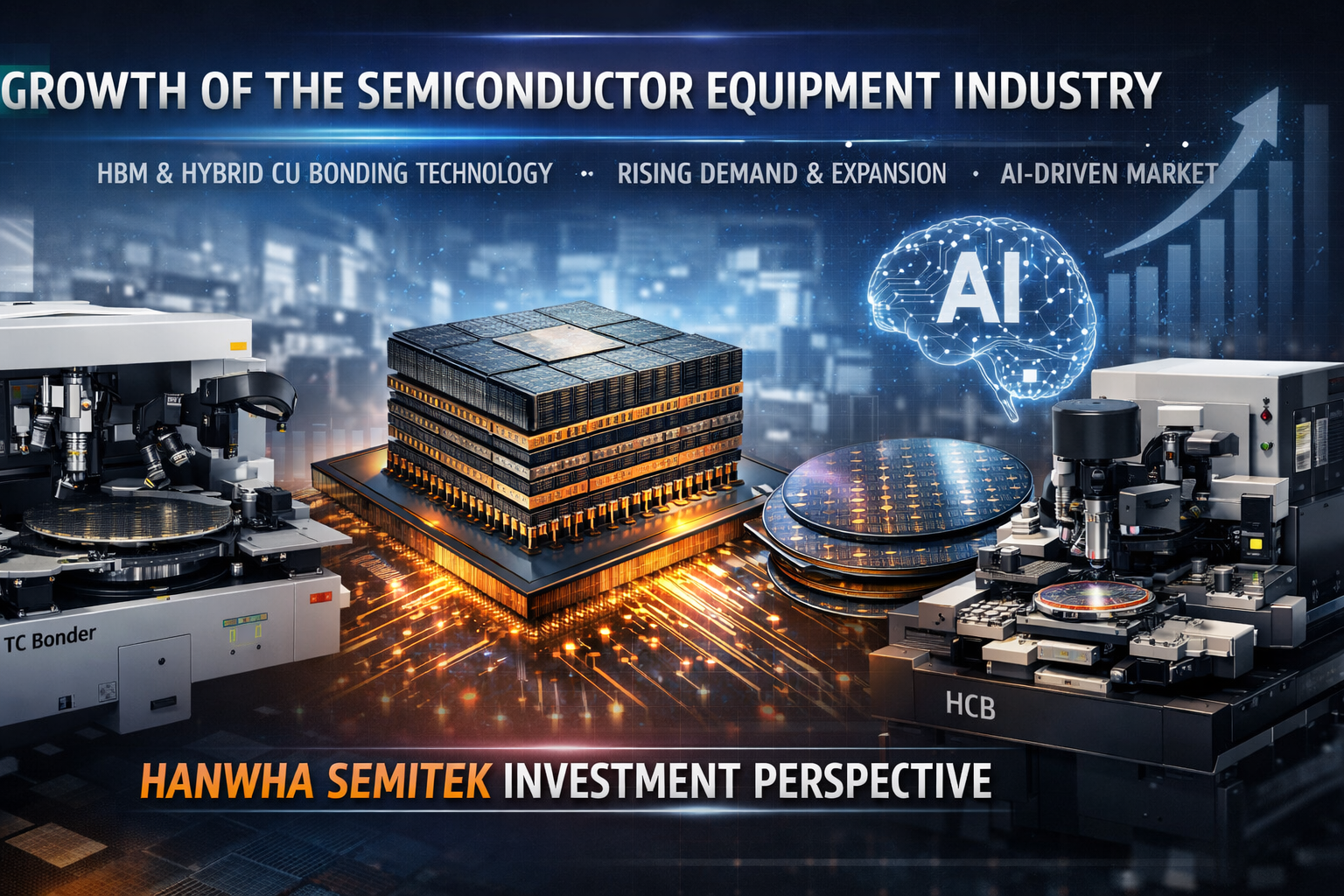 AI 반도체 시대가 열리면서 HBM(고대역폭 메모리) 중심의 반도체 장비 산업이 빠르게 성장하고 있습니다. 특히 SK하이닉스와 삼성전자가 차세대 HBM 생산 확대에 나서면서 TC 본더와 HCB(Hybrid Cu Bonding) 장비 시장이 새로운 성장 산업으로 떠오르고 있습니다.