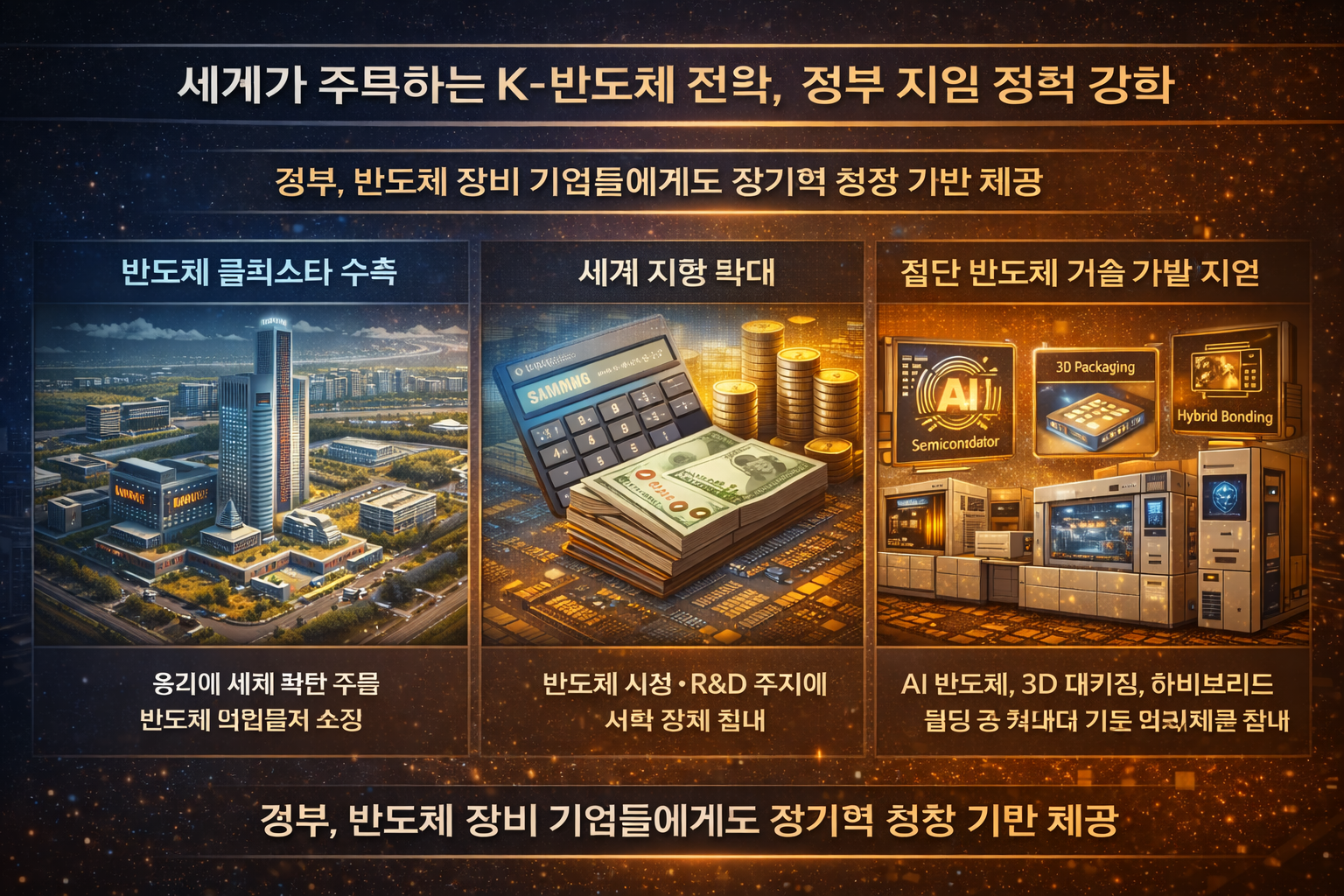 정부는 AI 반도체, 3D 패키징, 하이브리드 본딩과 같은 차세대 기술 분야에 대한 연구개발 투자를 확대하고 있습니다.