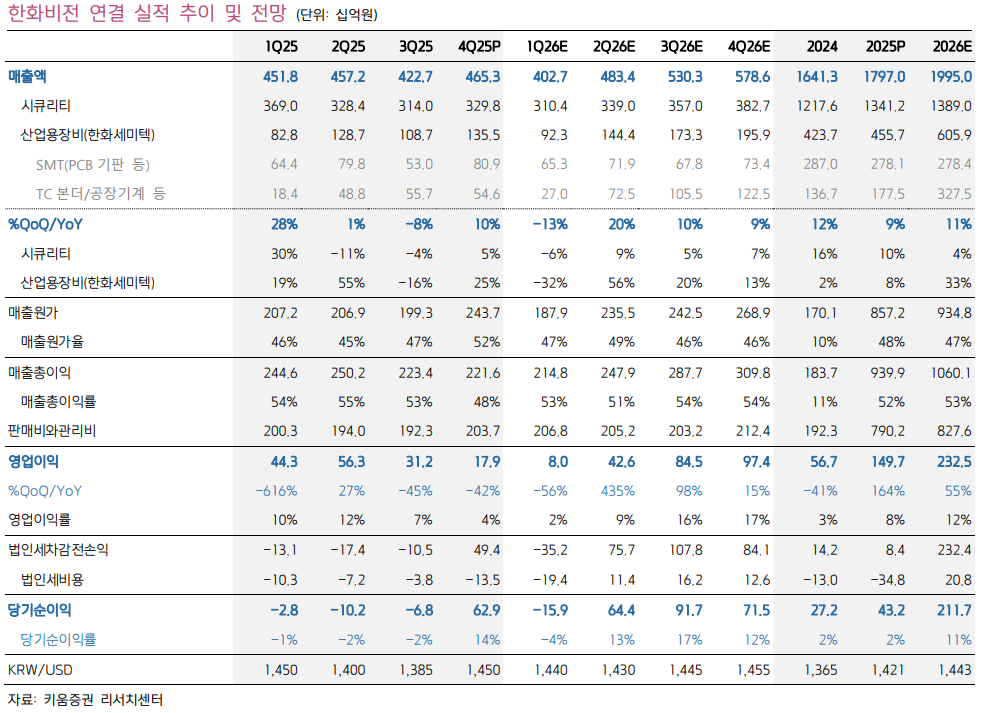 특히 산업용 장비 사업(한화세미텍)의 성장이 매출 증가의 핵심 요인으로 분석됩니다.